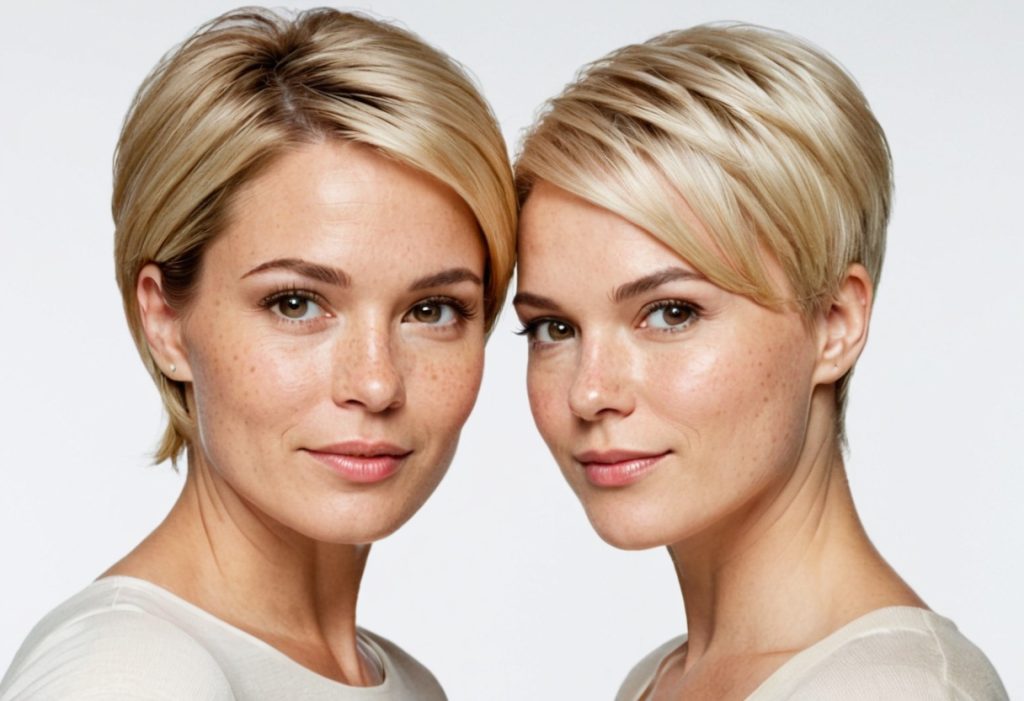 Bei etwas älteren Damen wird das kurze Platin blonde Haar lieber glatter und seitlich gekämmter getragen. Am besten wird das Deckhaar geglättet und mit etwas Haarspray, Schaumfestiger oder Haar Gel, seitlich gekämmt und mit einem leichten Pony auf der Stirn angewinkelt.